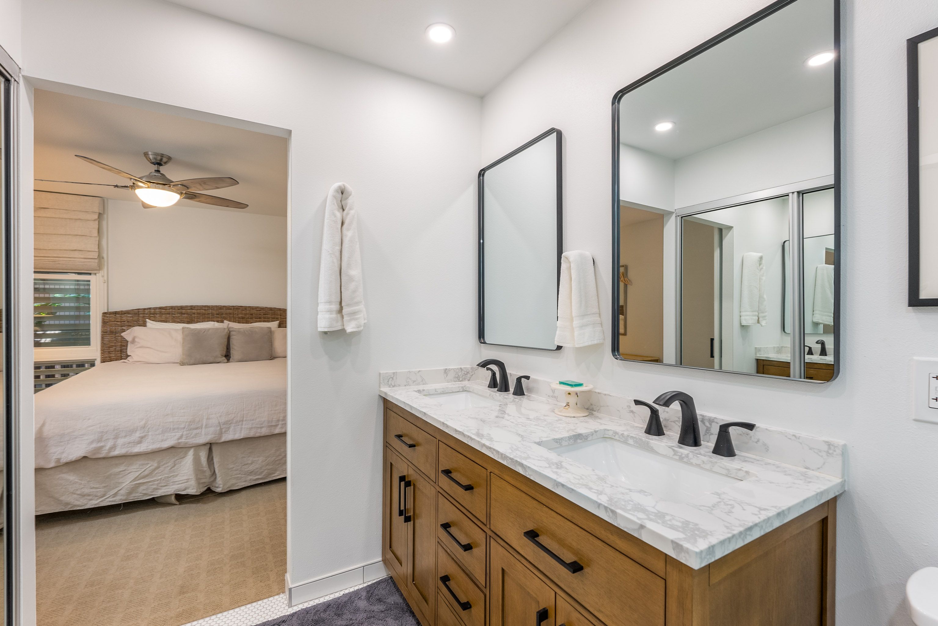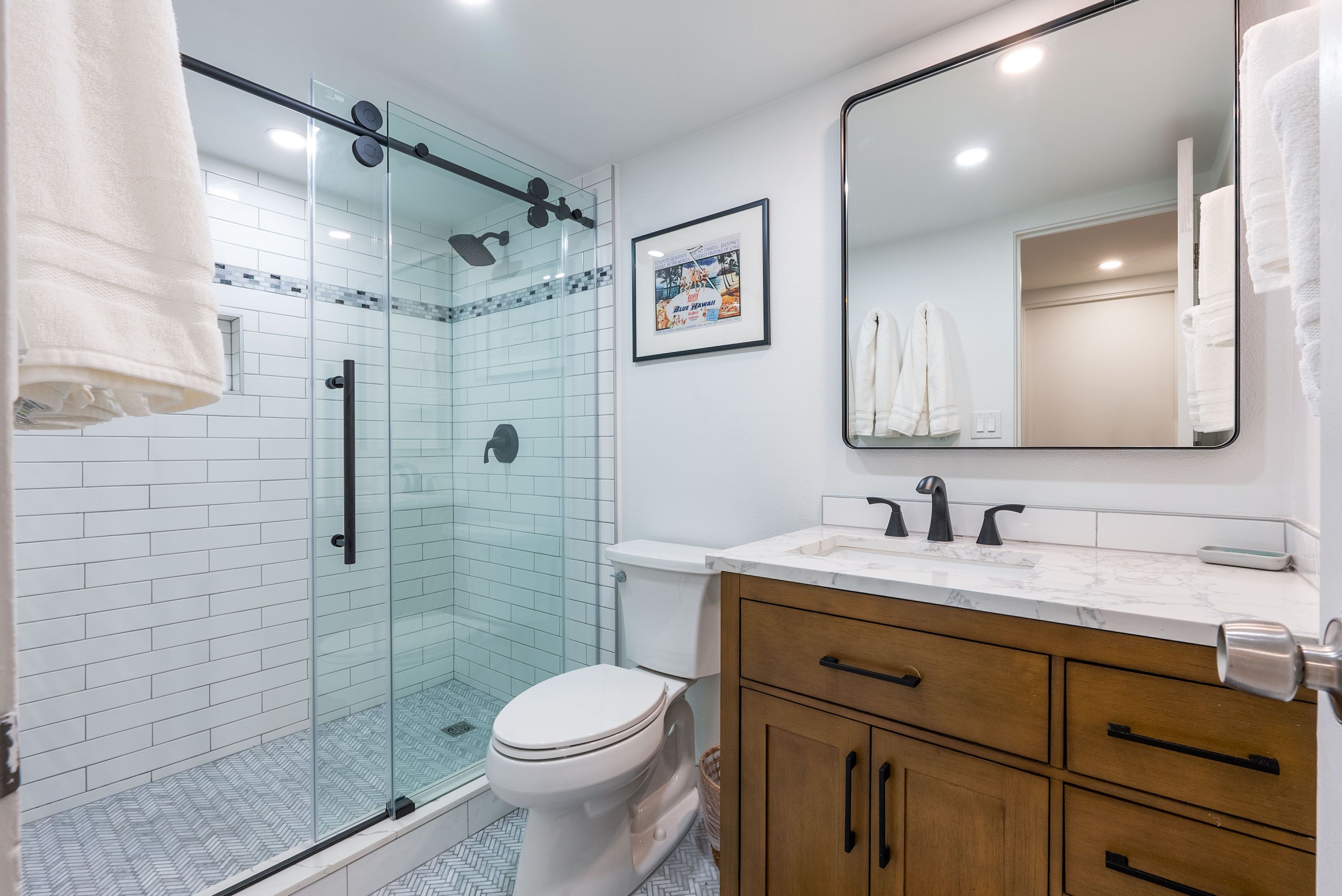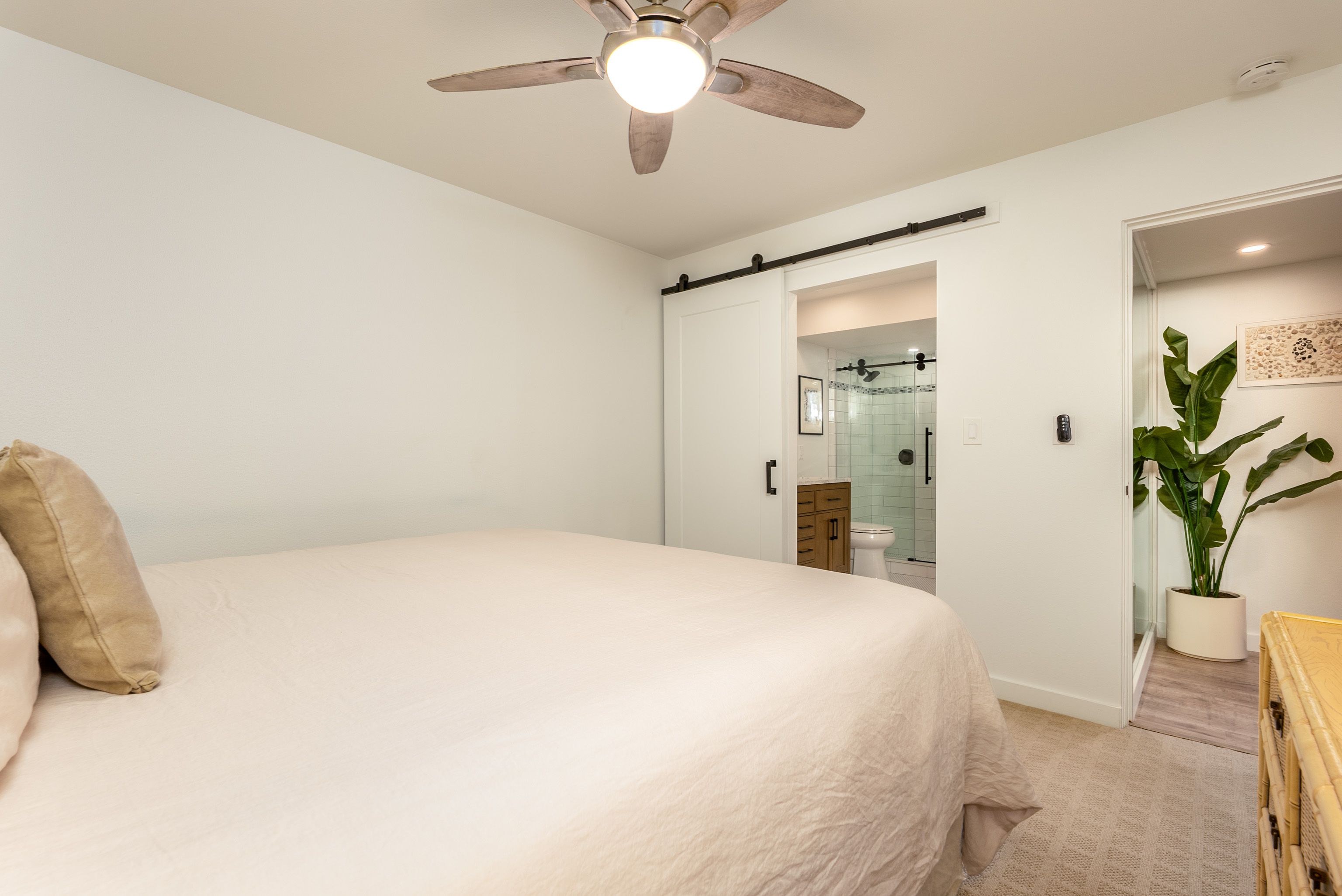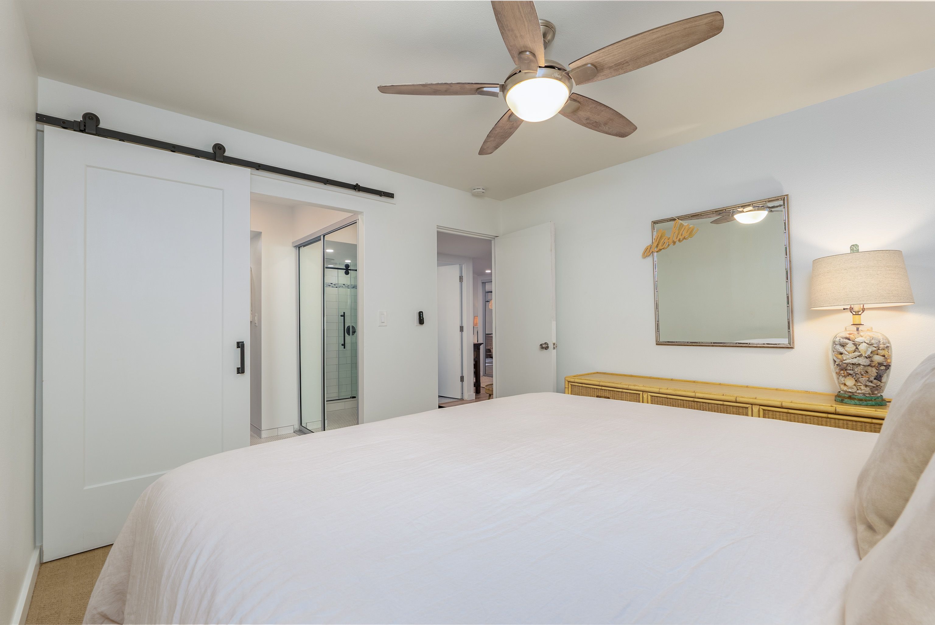 This newly renovated two bedroom/ two bathroom is able to accommodate 6 guests. The master bedroom has a king size bed, full closet, and an en suite bathroom. The guest bedroom has a queen size bed and full closet. The living room has a queen size sleeper sofa.
