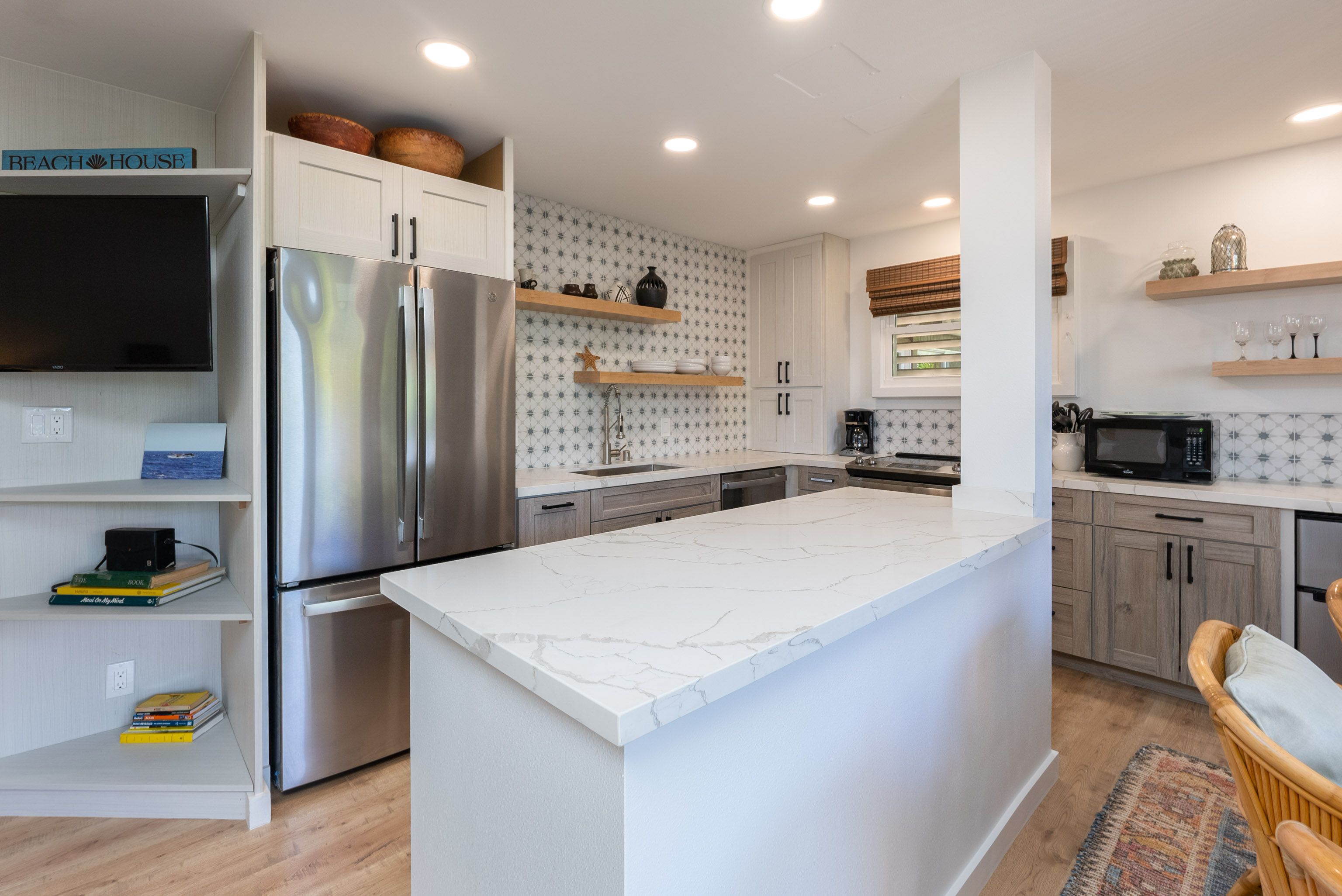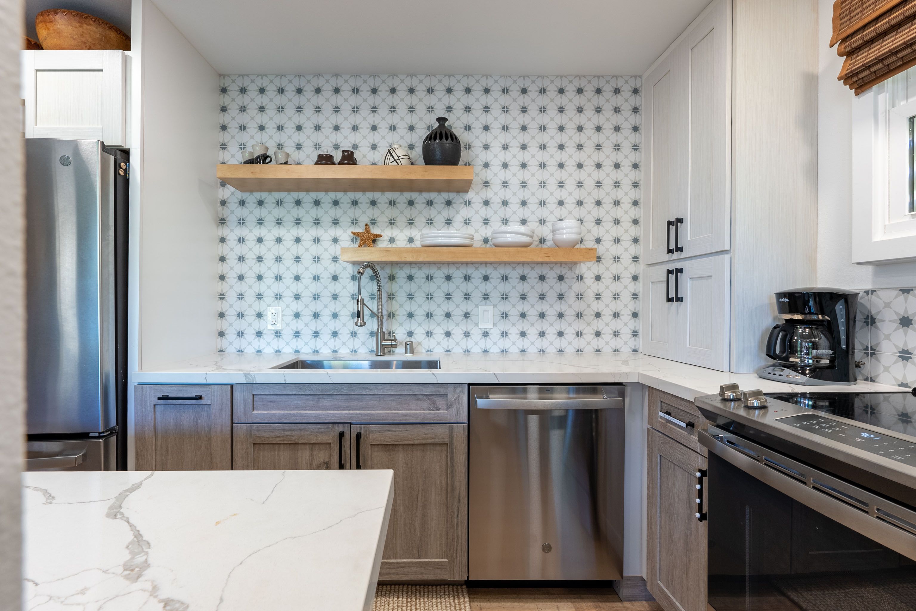 Nicely renovated unit with a very well equipped kitchen. You can hear the sound of the ocean from the living room!