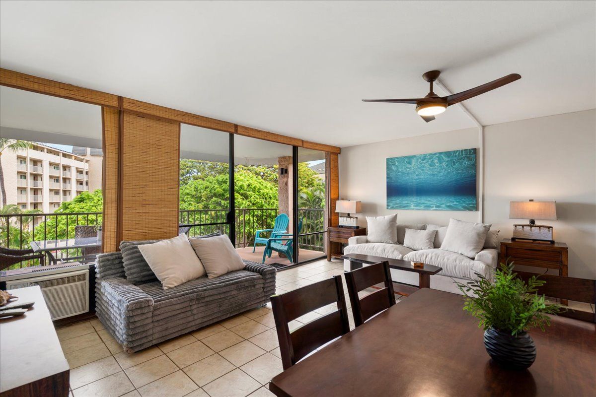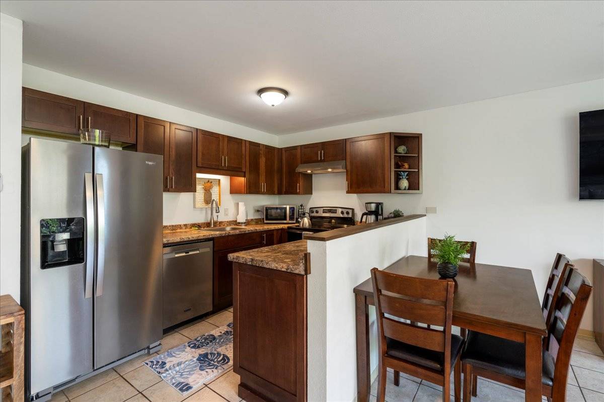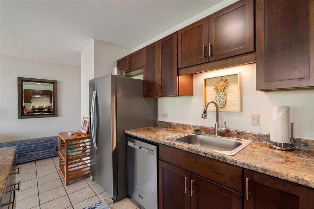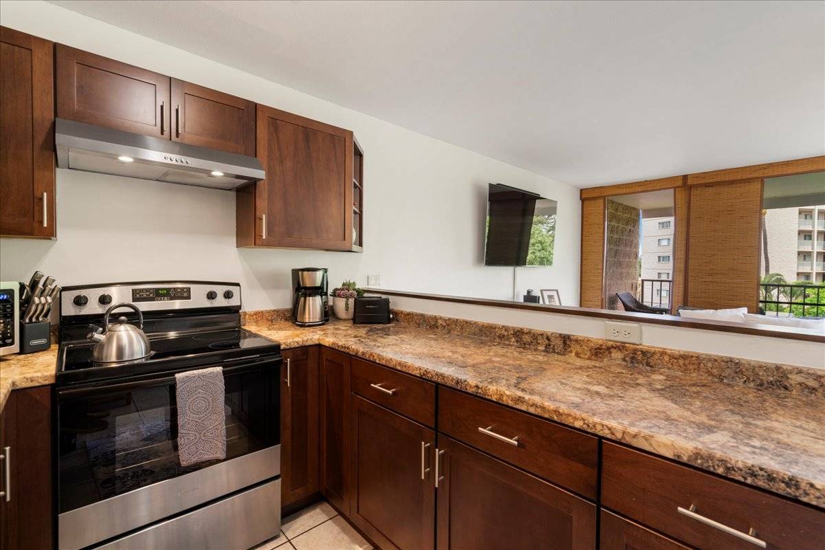 Stayed for two weeks at the end of February. The unit had everything you will need. Updated kitchen fully stocked. So great to have all beach accessories. Just walked across the street to Kam 1. Plenty of options for dinner within walking distance. Enjoyed watching the whales splashing from the lanai every morning! Can't wait to go back.