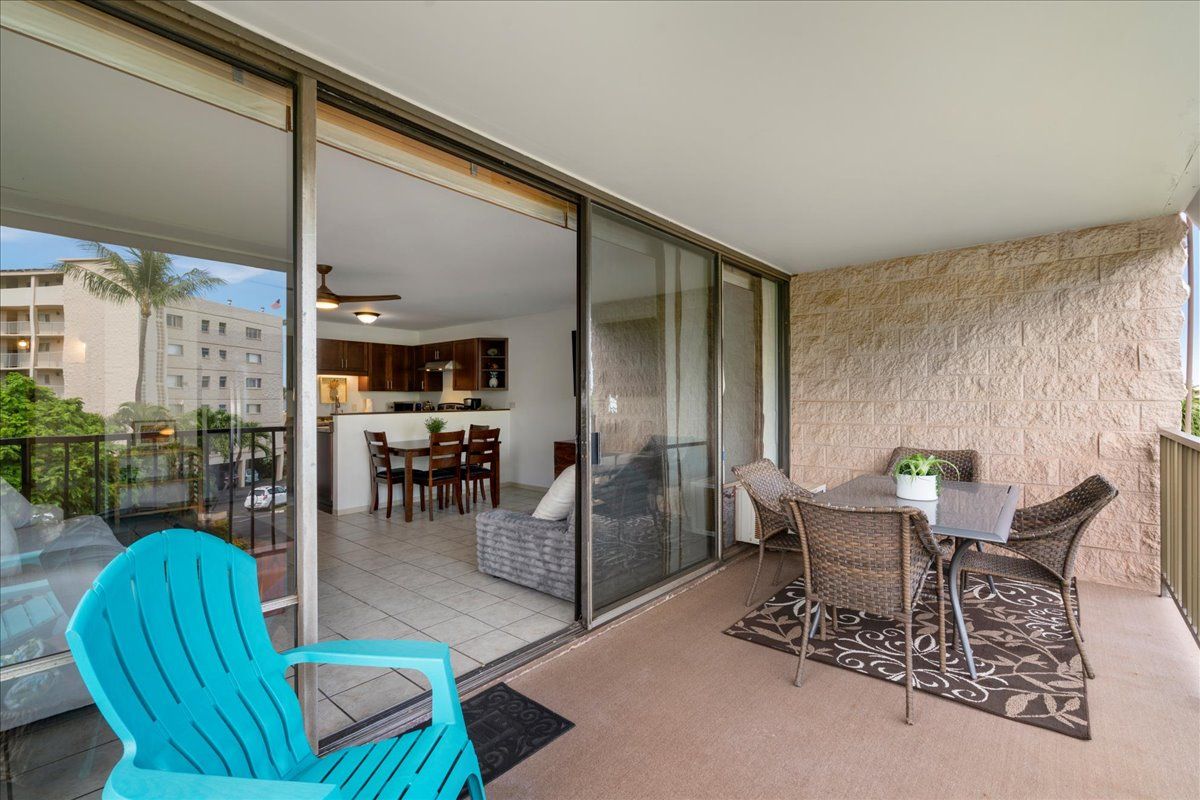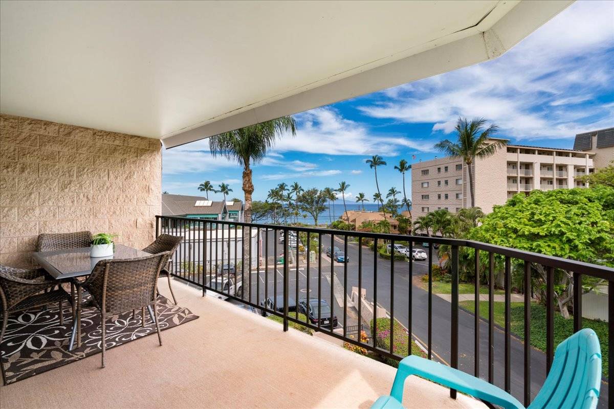 Ocean Views of Kamaole Beach Park from this spacious lanai! Perfect for your morning coffee and the newspaper or an afternoon relaxer watching sunset. Central location makes trips to the beach or shopping/dining a breeze! The third floor location is easily accessed by elevator or stairs and provides a breezy lanai and overlooks a view of the beach.Kihei Alii Kai has a pool, tennis courts, a barbecue, and hot tub.