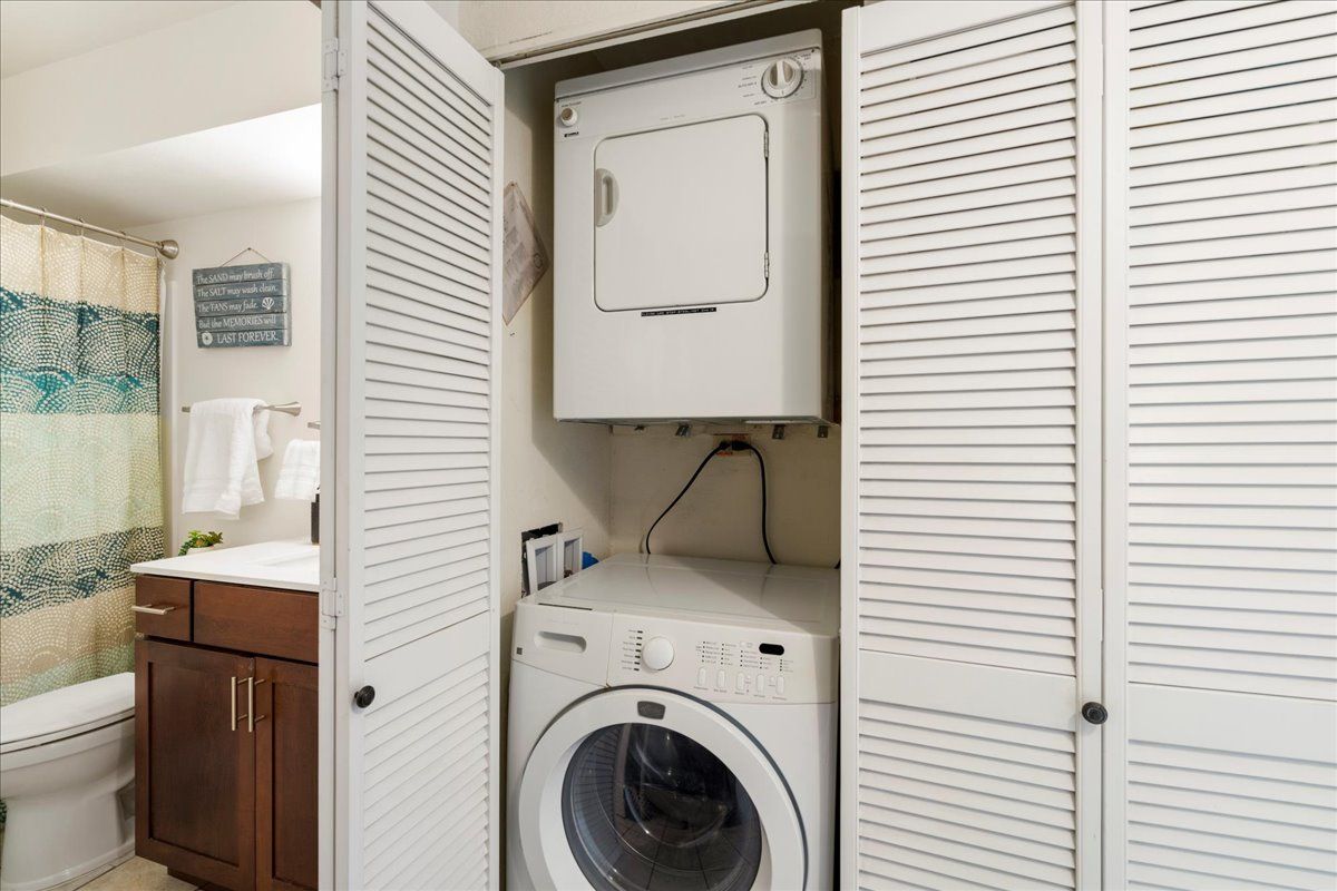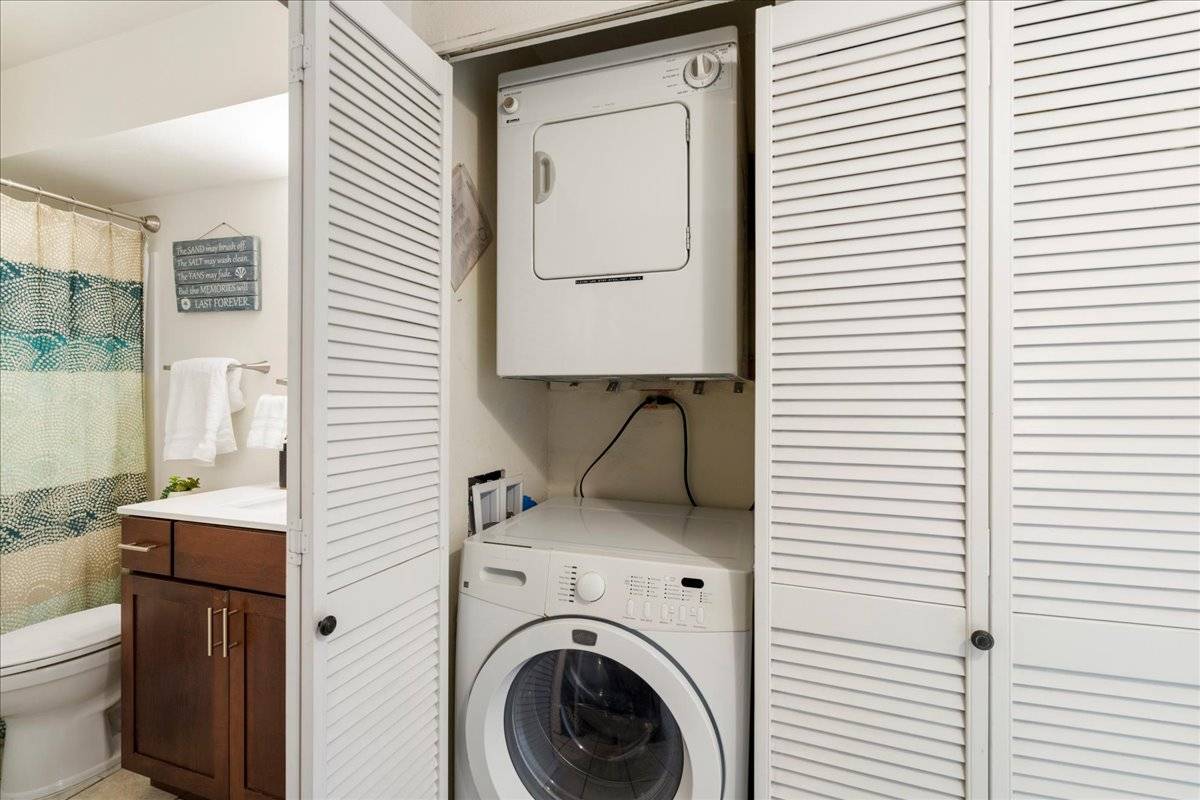 This unit was perfect. It's the first building in the complex, so you have a great view of the beach. It has chairs, towels, cooler, washer/dryer, new fridge, full kitchen with pots/pans/utensils, and the place was super clean. It's steps away from some shops and is right across from the beach. In addition, it was very spacious for a one bedroom condo. The pull out couch is a little older, but was fine for my kids. The bedroom didn't have an AC unit, but the ceiling fan did the job. The management company, Bello Realty, was always very responsive when I had questions and they were extremely professional. Zero complaints here and I would not hesitate to rent this property again. If you are on the fence, don't be. You will not regret it!