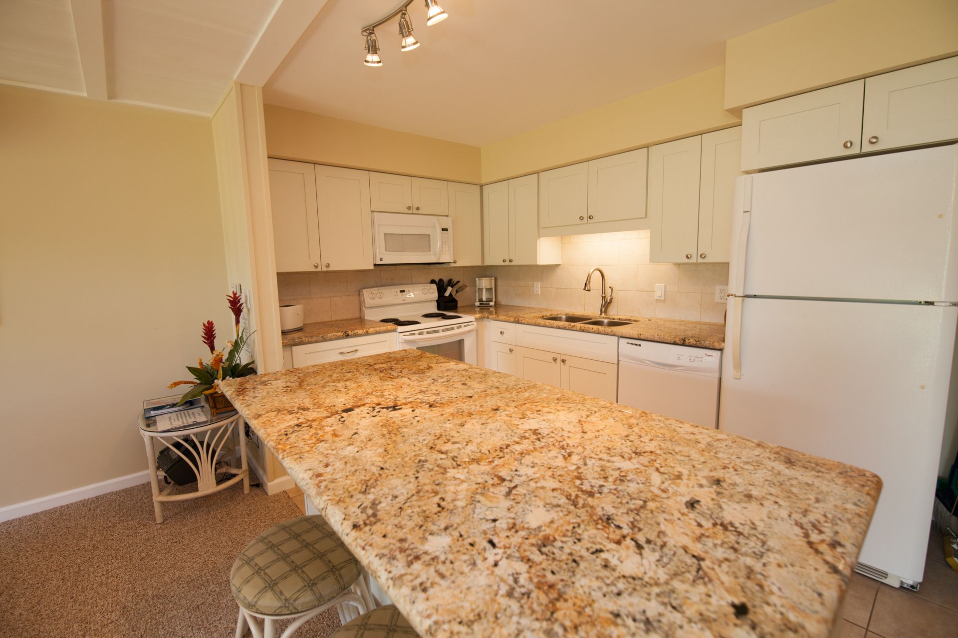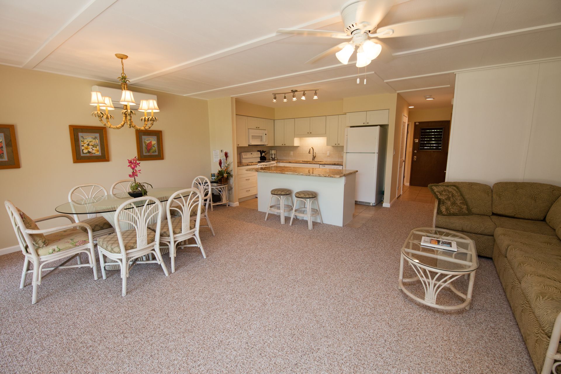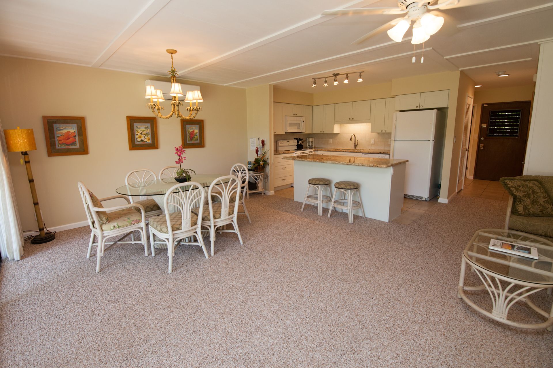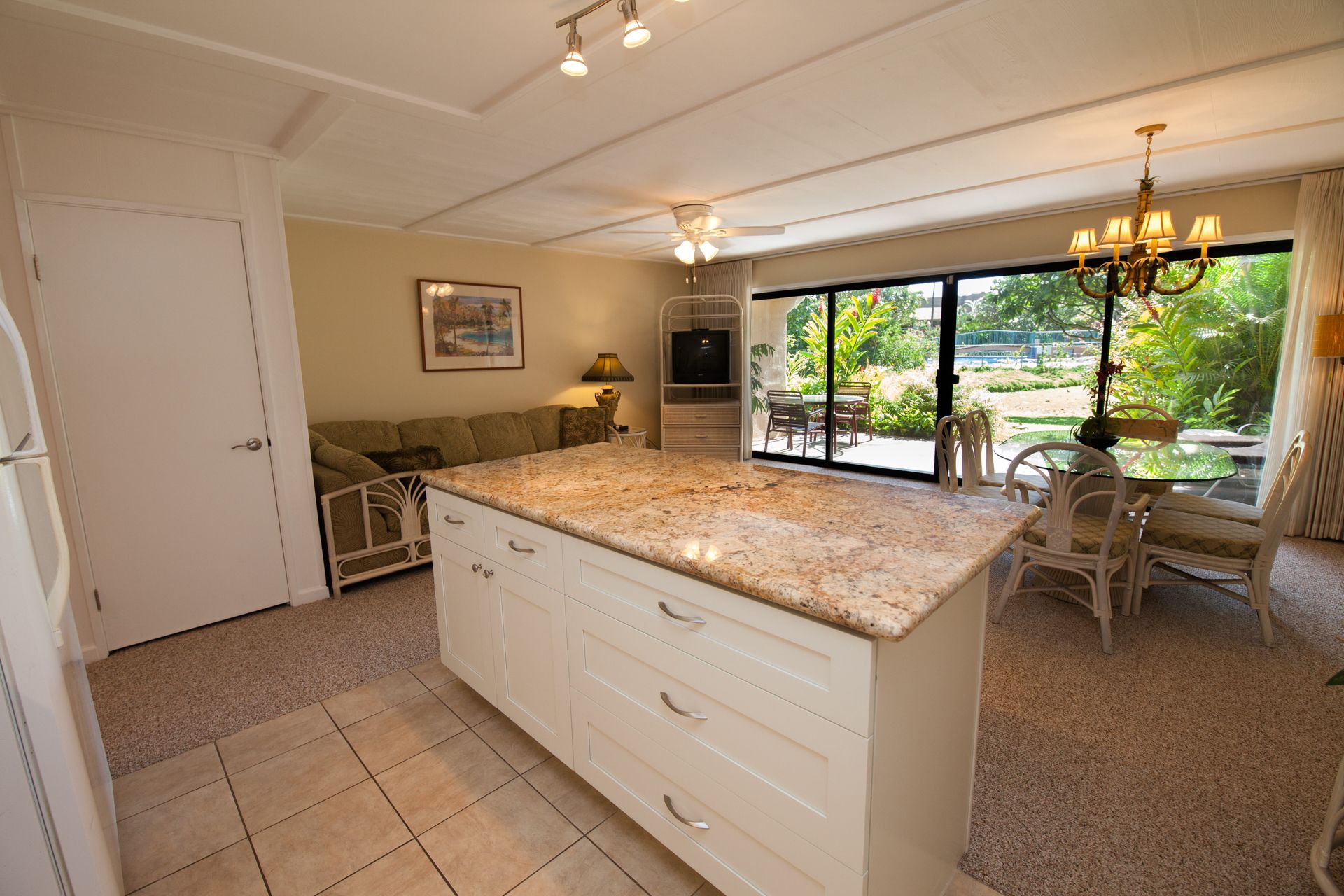 1 BR0.5 BA4 Guests Exterior updated and upgradedExterior light and airyExterior loads of counter spaceExterior granite counter topsExterior well equippedExterior open floor plaExterior breakfast bar and seating for 6Exterior tropical decorExterior living areaExterior ktichenExterior kitchenExterior bedroomExterior queen bedExterior ac and ceiling fansExterior bathroomExterior walkin showerExterior bathroomExterior lanai looking towards poolExterior al fresco diningExterior lanai lounges InquireFeatured AmenitiesAir ConditioningCommunal PoolWasher & Dryer